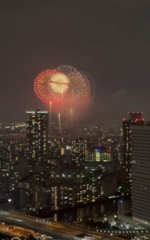 娘家族のマンションから花火を眺めるのが毎年の楽しみなのですが、今年は仕事の都合で到着が遅れ、着いたころには大雨☂️…。